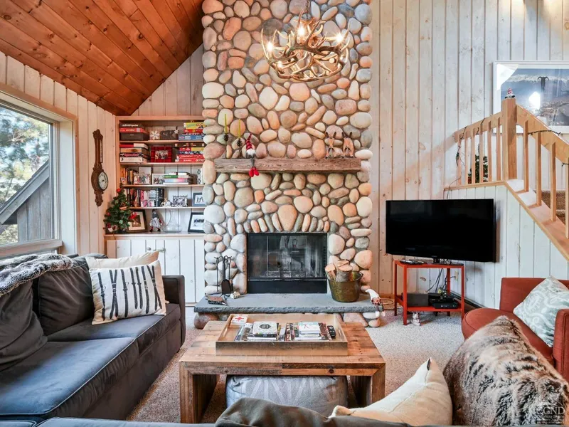 Discover the perfect blend of comfort, convenience, and year-round enjoyment in Windham. This well-appointed Brainard Ridge townhome boasts 3 bedrooms, 2 bathrooms, and sleeping alcove. The main focal point of this residence is the spacious great room, complete with vaulted wooden ceilings and a stunning 2-story stone fireplace, creating an ideal backdrop for cozy winter evenings. Natural light floods the space through large windows and skylights, enhancing the rustic warmth and welcoming atmosphere.The dining area and fully renovated enlarged kitchen are sure to impress, featuring granite countertops, and breakfast bar, new stainless appliances, and a wine refrigerator, making it a delight to cook and entertain in.The upper level hosts the primary ensuite, a peaceful retreat with a renovated tiled bath, separate shower, and jacuzzi tub. The skylight window enhances the cozy sleeping alcove area.On the lower level, find 2 bedrooms, featuring double bunk beds and guest bedroom that doubles as a rec/TV area, a full bath, and a laundry area, providing both privacy and convenience. Sliding glass doors lead to a stone patio- great place to add a hot tub!Designed for outdoor enthusiasts, the large, heated coat room provides ample storage for seasonal gear and equipment. Nestled amongst trees in the sought-after Brainard Ridge development, this home offers privacy while being close proximity to Windham Mt Club's array of attractions, including alpine skiing trails, golf courses, hiking and biking trails, Main Street restaurants, and more. Sold furnished, this home is ready for you to create unforgettable memories this winter! Experience the best of Windham in this delightful getaway.