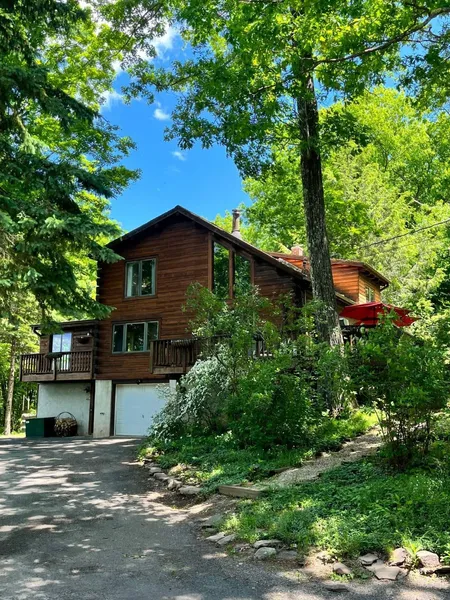 Turn-key opportunity for business or private use, this successful Guest Favorite short term rental is perfectly located between Hunter and Windham Mountains, secluded yet close to everything you need! Completely renovated, this post-and-beam style log home home has been fully restored and outfitted to embrace modern-rustic design choices. The sunny ground floor entry features ceramic tile floors and plenty of closets for your gear, a private bedroom with ensuite bath with a marble topped vanity and a separate game room. Up a flight of stairs, the main floor features a generous living/dining space with a large kitchen pass-through, sit-down dining for 12, separate lounge and tv area and wrap-around windows with a balcony for a tree-house like experience. The fully renovated cook's kitchen features stainless steel appliances, plenty of storage, a moveable island, ceramic flooring and butch...