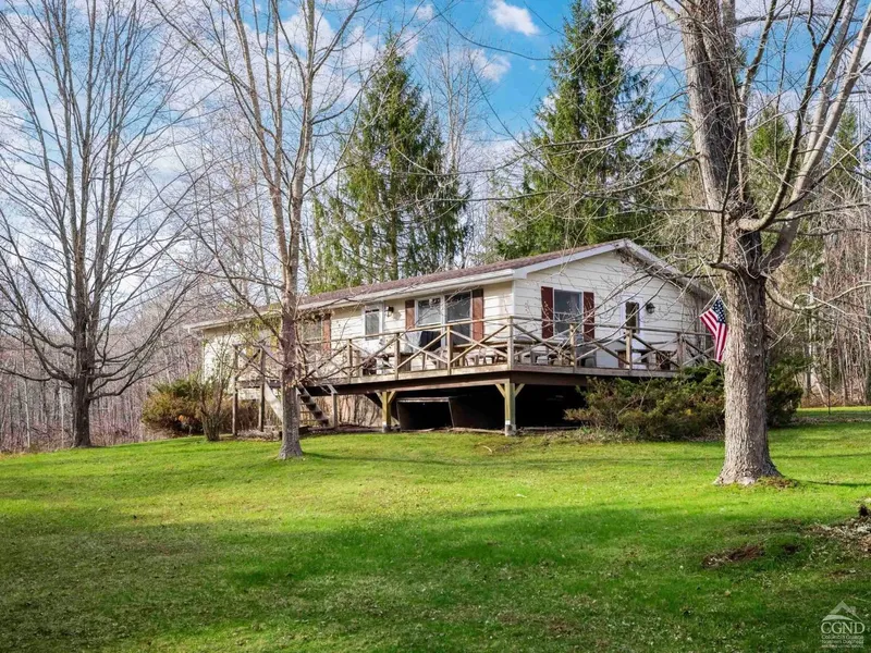 Charming 3 bedroom ranch near Hunter town with mountain views. Home is lightly used, warm and cozy. This lovely home has lots of light and easy flow. Bright retro eat in kitchen and full dining room. One bedroom presently used for laundry and office. Full unfinished basement with high ceilings, outside entry and French drain. Laundry could easily be transferred to basement. The attic has 12 inches of insulation. Well cared for home. Enjoy the front deck which wraps to side for those lovely Catskill Mountain days and evenings. Take time to watch the stars and wildlife. Home sits on 2 acres with a barn shed. Municipal water and sewer. Great full time home or get away. This home is a modular not a doublewide just seconds to Hunter Mountain. Come and join us in the Catskills!