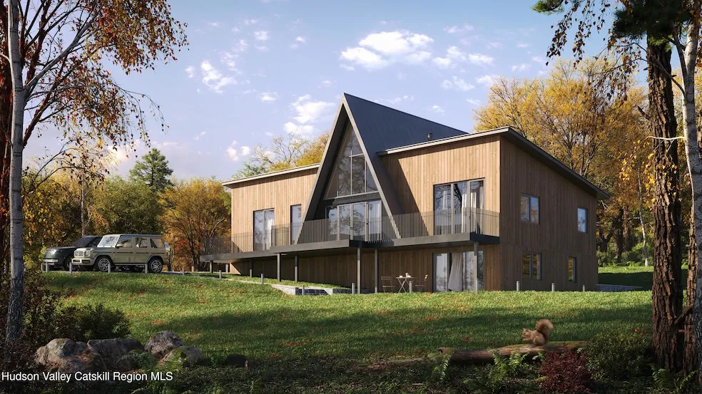 Welcome to the ultimate upstate escape where sleek modern design meets breathtaking mountain views. This to-be-built stunner sits on 5 private acres in the heart of the Catskills, offering 3,334 sq ft of thoughtfully designed space with 3 bedrooms, 3 baths, plus a flex room to make your own. Step inside and be wowed by floor-to-ceiling windows flooding the open-concept living space with natural light and uninterrupted views. The gourmet kitchen is a showstopper, featuring custom cabinetry, a striking 12-foot waterfall island, and top-of-the-line appliances perfect for hosting or just indulging in your morning coffee. The living and dining area exudes warmth with 25-foot vaulted ceilings, exposed beams, and a sleek fireplace, setting the scene for apres-ski lounging or cozy nights in. The primary suite is a true retreat, complete with a spa-like ensuite, radiant heated floors, and a spaci...