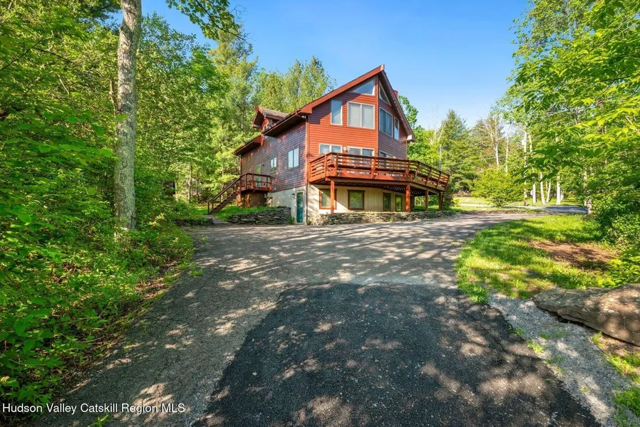 Spacious Chalet at Hunter Mountain - Prime Vacation Rental Potential Just 0.3 miles from Hunter Mountain Resort, this 3,458 sq ft chalet offers an unbeatable location for year-round adventure-skiing, hiking, and Dolan's Lake are all at your doorstep. With 7 bedrooms, 3 baths, and three finished levels, it's perfect for large groups, making it an excellent short-term rental opportunity. The great room features a cozy fireplace and opens to a wrap-around deck with stunning mountain views. A private back deck with hot tub adds to the appeal. The well-equipped kitchen, main-floor bedroom and bath, and gear-ready ski/laundry room ensure both comfort and function. Upstairs you'll find 4 more bedrooms and a full bath, while the walk-out lower level boasts a 2-bed, 1-bath apartment with separate entrance-ideal for guest privacy or added rental income. Extras include community water/sewer, paved driveway, storage shed, and proximity to charming towns like Tannersville, Woodstock, and Phoenicia. Only 2.5 hours from NYC, this is your chance to own a versatile mountain retreat with strong investment potential. Schedule your tour today! A 3D Walkthrough Tour is available in the digital Lookbook or by request from the listing agent.