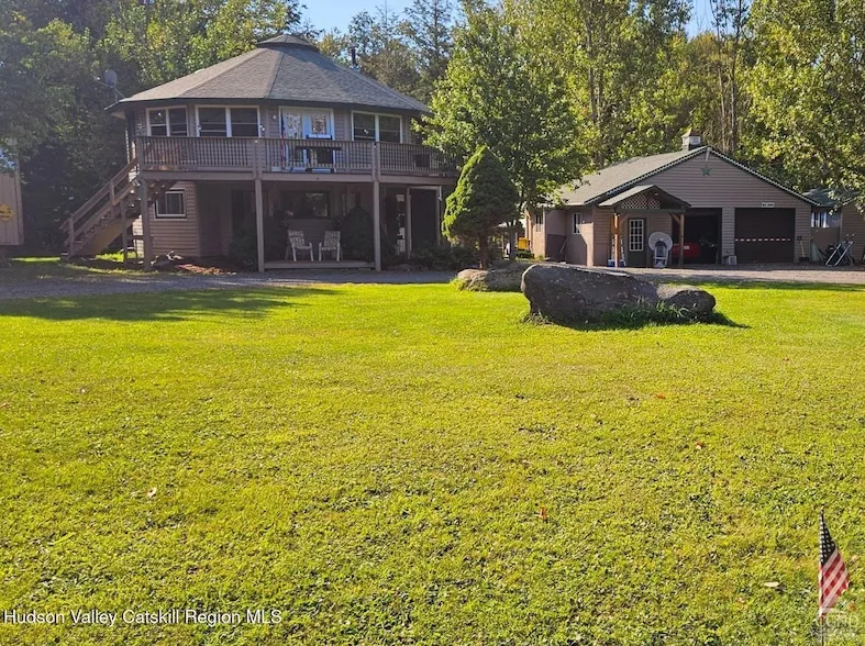 Nestled in the scenic beauty of Windham, NY, this unique octagon house offers a truly one-of-a-kind retreat close to skiing, golf, and hiking adventures. Set on over 5 acres of parklike surroundings, this property provides plenty of space for relaxation and exploration. The main home features 3 bedrooms and 2.5 baths, offering comfort and charm with stunning mountain views with surround windows to bring the outside in. The perfect country location with an animal farm just up the road to enhance the country stay. Adding even more appeal, on the premises is a cozy tiny house on wheels that can be purchased separately and/or relocated to any part of the land, a whimsical tree house perfect for outdoor adventures, and spacious garages and man cave/she shed for all your storage needs. Along with a fenced dog run/chicken coop.. whatever you choose. Situated on a beautiful country road, this property combines tranquility with convenience, making it an excellent investment opportunity for Airbnb enthusiasts or anyone seeking a fun full time or weekend getaway for family and friends. With its unique character and incredible setting and just a little different from the rest, this home is perfect for those looking to escape to the country