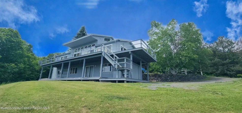 Windham - ''The Place to Be!''Perched to capture panoramic views of the surrounding mountains and Windham's ski slopes, this beautifully crafted cedar home offers the perfect year-round escape in the heart of the Catskills. Just minutes to Windham Village, you'll enjoy easy access to golf courses, breweries, restaurants, walking paths, live venues, and all the four-season attractions this vibrant community has to offer. Step inside to an open floor plan flooded with natural light, featuring a massive stone fireplace as the centerpiece of the great room perfect for cozy winter evenings. The primary suite also boasts its own stone fireplace, adding warmth and character. With three bedrooms, three full baths, and a flex space ideal for a nursery, office, or extra sleeping quarters, there's room for family and guests alike. Crafted entirely in cedar inside and out this home is virtually maintenance-free when it comes to painting. Enjoy stunning views from walls of windows that open to a spacious deck, ideal for entertaining or simply soaking in the natural beauty. A circular driveway adds curb appeal and easy access year-round. Whether you're seeking a weekend retreat, investment property, or full-time residence, this home checks all the boxes in Windham the mountain town everyone wants to call home. The property slopes down to a barn in the field.