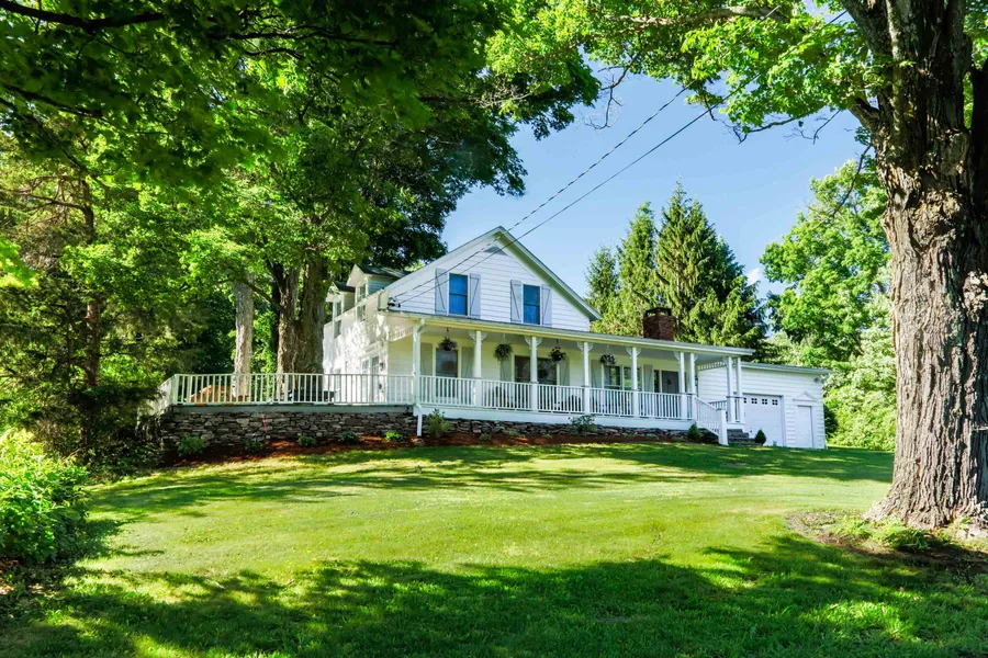 Imagine riding on a scenic road to your wonderfully refurbished 1793 Farmhouse with views! Well imagine no more! You have found it all, beautiful barn, in-ground SALT WATER pool, stream, 25 acres. Home sits high on the property. Recently remodeled in and out. Amazing wrap around porch, large area for dining/relaxing, stone patio w/steps to pool & barn. Original wood floors,extra large living room, beautiful double doors to the large deck. Kitchen, remodeled, granite counters, top of the line appliances. Island separates kitchen from dining room with amazing fireplace, enjoyed from both rooms as well. These rooms can be closed off using pocket doors. Bedroom w/ door to stone patio, full bath, second bedroom & laundry on this floor. Upper level, large master, 4th bedroom, large bathroom as well. Attached garage can be used for vehicles or as a rec room. Can be sold furnished w/dec. items, ...