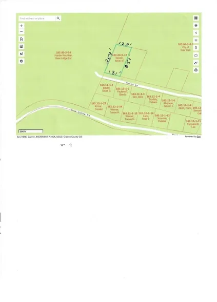 Research Parcel InformationGo over Hunter Mountain bridge. Make right on to Riverside Dr. Make left on to Mountain Drive. Make right on to Pine Lane. Make left on to Hunter Lane. Go to end. Property on right.