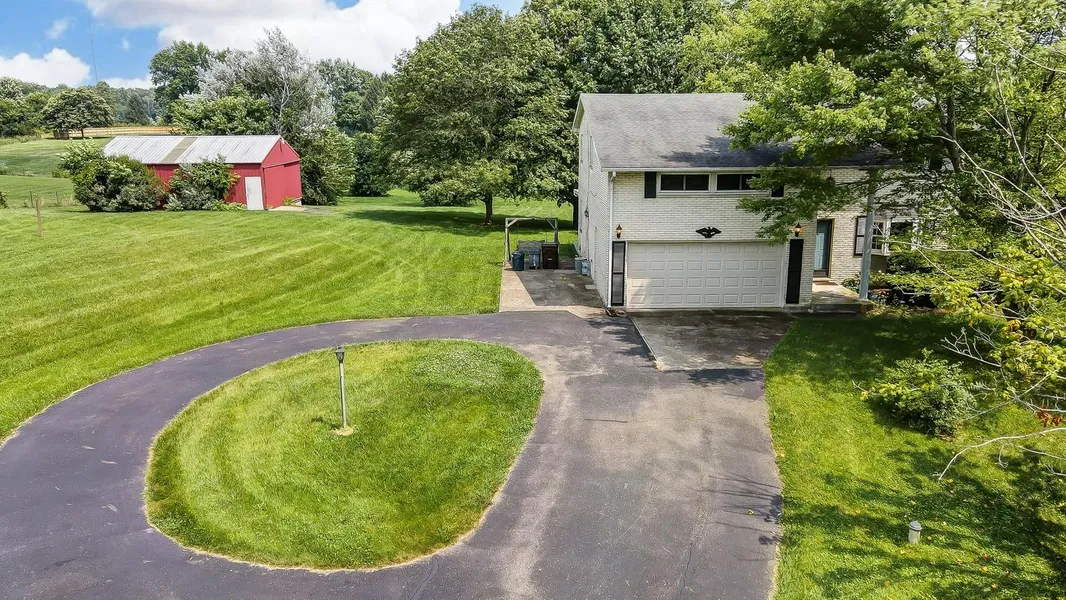 Beautiful all brick home nestled in park like setting with mature trees. Original owners! Secluded setting with over 5 acres down long private drive. Home features eat in remodeled kitchen with all stainless appliances. 4 bedroom and 2 1/2 baths. Large rooms with plenty of storage. Newer windows . Heating and A/C installed 2018. Pole barn. Hanging light in Living Room will not stay.