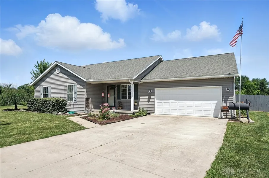 Welcome home to this 4 bedroom, 2 full bath ranch on a quiet cul de sac on the edge of Jamestown! The large living room opens to the well appointed kitchen with lots of cabinetry and designated dining space, perfect for family dinners. The primary bedroom with en suite is roomy and the primary bath has a convenient walk in shower. This home is welcoming and spacious with lovely hardwood throughout. You can enjoy your morning cup of coffee on your covered deck overlooking the expansive backyard and have the peace of mind of a brand new roof and siding! Conveniently located to schools, downtown & Shawnee Lake, this home is only 12 years old and boasts the largest lot in the plat. Schedule your showing today!