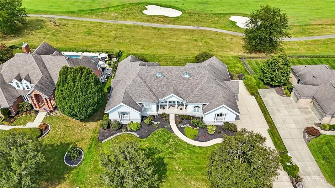 Multiple outdoor living areas — including a balcony and covered porch — provide the perfect backdrop to relax and enjoy golfers and wildlife along the course.