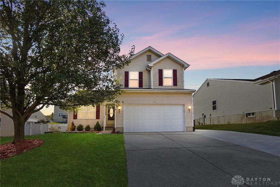 3BD 2.5BA 2-story home with a full unfinished basement, approx.1,540 sqft of living space, and 2-car attached garage with parking pad. From the entry step inside to the front room that could be used as a formal dining room or living room. The kitchen has plenty of cabinet space, a eat-in breakfast area for dining, and is open to the family room. The family room has nice natural light. Great space for gatherings and entertaining. A half bath completes the main level. Step upstairs to the primary bedroom with an en-suite bath. There’s also 2 additional bedrooms and 1 full bath upstairs. Enjoy cookouts and outdoor entertaining in backyard that has a deck and plenty of room for play. Conveniently located near shopping, restaurants & recreation. New roof (2025), New screens for windows (2025), New garage door (2023), New driveway extension (2021), New deck (2020), New fridge (2020), New stove (2020), HVAC (2017), Water heater (2018).