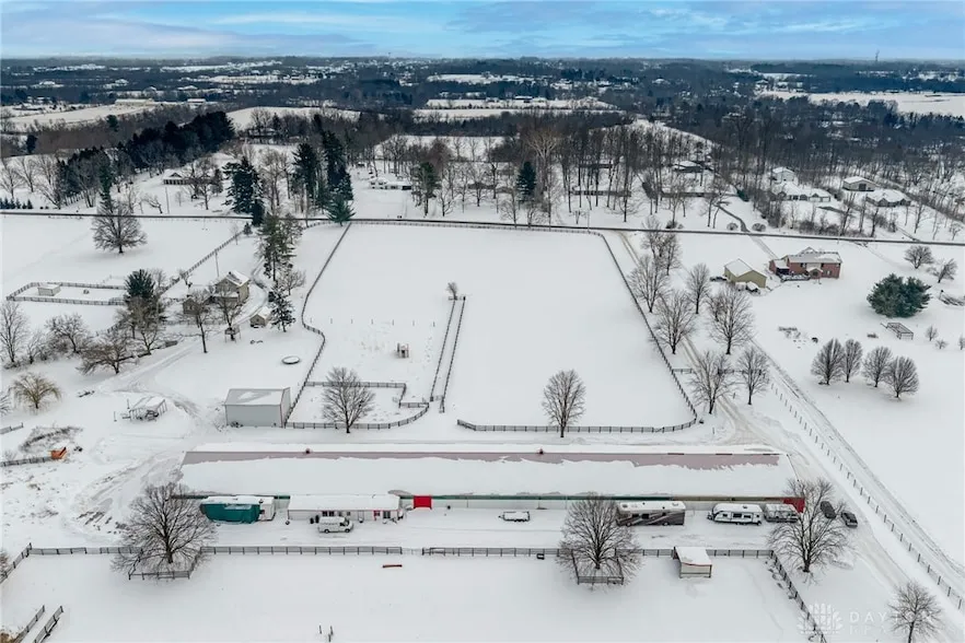 You must see this hard to find property, in a great area of Sugarcreek Twp. The property is close to Bellbrook, Waynesville, Washington Township & Centerville, OH. Purchase includes 21.68 acres & a 66x380 steel barn (25,080 SF). You can enjoy the indoor riding arena with several stalls, tack room, and more. Est. 66x100 of the barn floor is cement & currently rented. Balance of the floor is a dirt floor where current owner stores hay & straw, tractors, & equipment. In the back of the barn is living quarters with 2 bedrooms, 1 bath, and a kitchen that adjoins the living room (22x11). Is on a septic tank system & has city water to the house & barn. Many possibilities for the use of this property. Plenty of room to build a new home or homes.