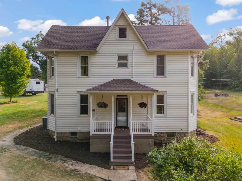 Welcome to this equestrian's dream, a charming 4-bed, 2-bath horse property just 18 mins from Morgantown, PA. Nestled on a quiet country road, this property features a re-sided bank barn, newly fenced 9-ac pasture, & 2 barns w/ metal roofs, ideal for your livestock. The spacious yellow 12x24 shed w/ electricity & a loft provides ample storage and workspace. Inside, the inviting screened-in mudroom leads to a cozy living room w/ a gas fireplace, while the basement boasts a wood fireplace for extra warmth. The open floor plan seamlessly connects the kitchen & dining area, perfect for family gatherings. The bedrooms are generously sized, ensuring comfort for everyone. Outside, enjoy the tranquil wooden deck surrounded by perennials & landscaping, perfect for peaceful relaxation. Horse trails wind through the woods, offering scenic rides, & deer stands are available for hunting enthusiasts. The property also includes a chicken coop & is shaded by large trees, enhancing its country charm.