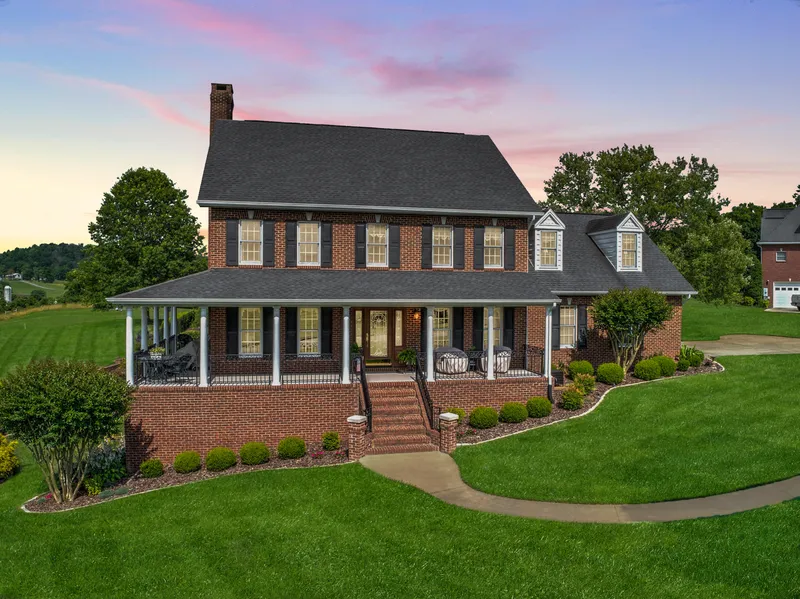What a gorgeous view! Custom built brick home is stunning and offers excellent quality throughout. Meticulously maintained. Hardwood flooring, Andersen Elite windows, upscale embellished kitchen, two bonus rooms, unfinished basement plumbed for bath with separate septic in place. Out front is a covered wrap-around porch looking over the rolling Greene Co. acres. The sunroom and patio are simply amazing spaces which allow the sunlight in. The spacious, elegant family room with wood burning fireplace is the perfect retreat during cold weather. Chimney Top subdivision is an upscale neighborhood only minutes from Greeneville, Kingsport and Tri-Cities.