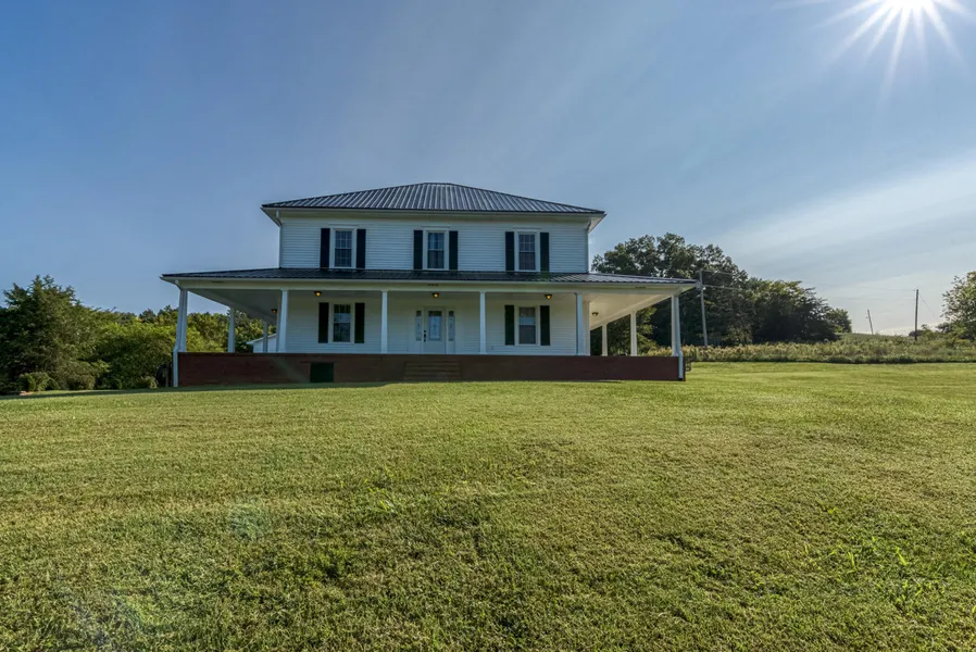 Beautiful and stately 2 story farmhouse in Western Greene County on 1.8 acres with a three car detached garage (2014). This home has been renovated and freshly painted inside and out (Poplar siding on home and cedar siding on garage). Lots of the historic charm has been maintained to include built ins, wood doors and freshly renewed original wood flooring. New roof and wiring and plumbing updated. Four bedrooms, one bath on second level, bonus room on main level can be a fifth bedroom if needed. Loads of living space and storage space and you can be assured of your privacy as the land across the street is owned by the state and is being maintained as a preserve. A wrap around porch is the perfect place to enjoy the peace, quiet and nature of this home. The HVAC system has been fitted with connections for an outdoor woodburning system if desired. Two fireplaces are ready for propane. Curtains do not convey. Perfect location for commuters to Morristown, Jefferson City, Greeneville. Photos, 9-11-2020