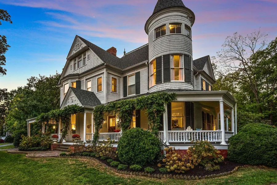 The exterior of the house has a park-like setting, with a Carriage house and a dollhouse/playhouse. You'll also find a fire-pit, seating area and an outdoor patio. The Hilltop House offers the chance to own an ageless piece of Greeneville history. Built in 1890 and owned by the Jones Family for several years, this elegant Victorian beauty was brought back to life by the sellers. The charm and artistry lend this southern classic home with numerous intricate details and as many original facets as possible. The Hilltop house is nestled upon 4.38 peaceful acres within the city. Mature hardwood trees line the paved drive and are also well-maintained around the property. Garden enthusiasts will be entranced by the abundant hydrangeas and wisteria which guide the path to the welcoming front porch. The fountain and newly laid, repurposed brick sidewalk add even more charm to the entrance of this home.