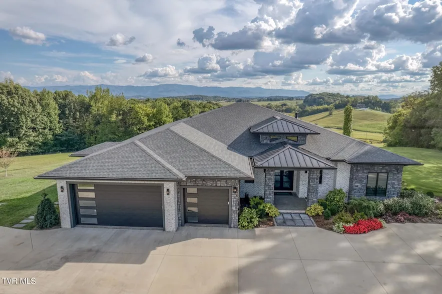 Exquisite Custom Estate on 34+ Acres This exceptional 4,265 sq ft modern estate offers the perfect blend of luxury and functionality, set on 34+ acres of picturesque land with a harmonious mix of pasture and woodland. Designed by renowned builder Brad King, this home is ideally located between Jonesborough and Greenville, providing serene country living with convenient access to both towns. Interior Features: Living Areas: The heart of the home boasts a custom concrete fireplace surround and hearth, crafted by Bob Bridgman of Hardcore Concrete Designs, incorporating sand from the French Broad River. Master Suite: A private retreat featuring remote-controlled shades, vaulted ceilings, a luxurious walk-through shower, and heated towel bars for added comfort. Bedrooms: Three additional spacious bedrooms, each with its own en-suite bathroom, ensuring privacy and convenience. Gourmet Kitchen: Equipped with top-of-the-line Thermador Masterpiece Series appliances with Home WiFi Connect, quartzite and leathered granite countertops, a double oven, and a walk-in pantry, this kitchen is a chef's dream. Additional Spaces: Versatile exercise room/bedroom, laundry/office space, and a mechanical room. The oversized 3-car garage features extra-large doors, while the encapsulated crawl space spans the entire length of the home for durability and energy efficiency. Smart Technology Features: Include Atmos surround sound throughout the main room and the lanai, Sonos sound around the pool, and Control4 smart lighting designed by Harmony Interiors in Asheville, North Carolina. Construction: Built with 2x6 exterior framing, an iron front door from Iron Lion in Nashville, and Pella Architect Series windows and doors, ensuring both strength and style. Solid Core 8-Foot Doors provide sound insulation and a touch of elegance throughout the home. Utilities: Two tankless water heaters, a 1,000 lb propane tank powering the spa, fireplaces, and outdoor kitchen. Outdoor Living: Stamped Concrete Patio: An entertainer's paradise with a built-in outdoor TV, gas fireplace, Bromic electric heaters, and hardwired security cameras for peace of mind. Mineral Spa & Pool: The black fiberglass pool and spa are equipped with Hayward OmniLogic Smart Technology, offering electric heating for the pool and propane heating for the spa. Outdoor Kitchen: Complete with a propane grill, refrigerator, and water access, adjacent to an outdoor bathroom for added convenience. Landscaping & Irrigation: Professionally designed by Evergreen with a full irrigation system, ensuring the grounds remain lush year-round. Security: Equipped with multiple hardwired outdoor security cameras for enhanced surveillance and peace of mind. Additional Features: Barn: A 60' x 40' metal barn with a 60' x 16' lean-to, featuring a septic system, two 50-amp hookups, two 14' garage doors, concrete flooring in two bays, electricity, and an office with a heating and air unit. This home offers an unparalleled combination of luxury, advanced smart home technology, and expansive outdoor living, making it the ideal retreat for those seeking privacy, sophistication, and modern convenience. Buyer/buyer's agent to verify all information.
