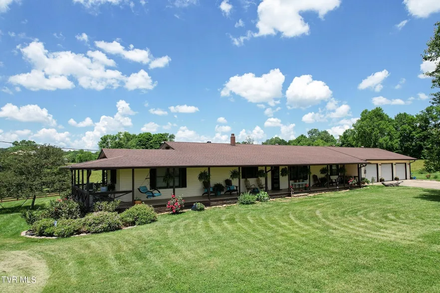 Are you looking for a quite property along the Nolichuckey River? Come discover scenic Northeast Tennessee at it's finest on 24 acres with over 1000 feet of river frontage, surrounded by level farm land with view of the mountains. THIS PROPERTY IS NOT IN THE FEMA FLOOD ZONE AND DOES NOT REQUIRE FLOOD INSURANCE. PROPERTY ALONG THE RIVER IS A BLUFF AND DID NOT FLOOD. Quite, peaceful atmosphere with birds singing on a dead end road surrounds the driveway that leads you to a beautiful ranch style home featuring wrap around porches and a breeze way between home and garage. Property is fenced and has wood frame barn and newer metal barn, garden area, dog run and access to the river. This welcoming home is very inviting with large living room, great room with fireplace, large U-shaped kitchen with island and lots of beautiful oak cabinetry and kitchen aid appliances. Main floor includes three bedrooms including primary and three full baths. Main floor finishes include new luxury vinyl flooring thru out except for baths, carpet in primary bedroom, new lighting, two barn doors, extra deep closets and blinds on all the windows. Primary bedroom has his and her closets and double sink vanity and shower. Primary also has access to the wrap around porch, perfect for your morning coffee break. Basement would be considered unfinished however it is heated and cooled. Floor joist are exposed. This ares is perfect for a man cave, work out area, recreation room, storage and the list goes on and on. Basement area has a wood burning stove for auxiliary heat source. The attached three car garage has lots of storage room for your cars and plenty of extra storage for equipment. The garage is insulated has electricity and also has a flue for a wood stove. This home is ready for you!