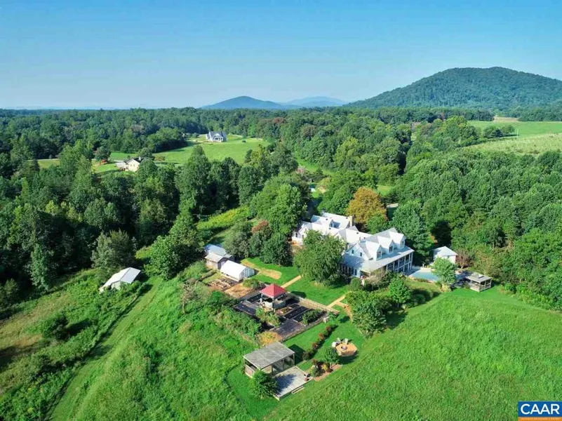 HISTORIC WILLIAM COX HOUSE, circa 1770, on 28 beautiful, mostly open acres, with great Blue Ridge Mt. views, and river frontage. Residence enlarged and completely remodeled in the past ten years into a spacious six bedroom home, with over 9500 finished square feet. This home has large public rooms, several covered porches, in-ground pool, guest cottage, and a complement of useful farm buildings and sheds, including a restored two-story bank barn , fantastic spot for parties as well as storage. This property is a superb value for a home this large with high quality construction and materials, and with a magnificent tract of land and private setting.