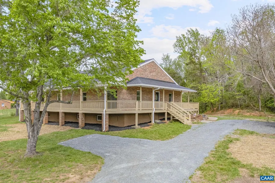 Welcome to the Country! Beautifully renovated brick home with stunning mountain and water views in desirable Greene County. Open floor plan features low-maintenance LVP flooring, new carpet, updated cabinetry, granite countertops, and stainless steel appliances. Spacious butler's pantry provides great storage. Main level offers two primary bedrooms plus a third bedroom/office with shared Jack-and-Jill bath. Large laundry room and half bath complete the main floor. Lower level includes a large great room, full bath, and 960 sq ft of unfinished space with outdoor access-perfect for storage or a workshop. Enjoy the views from the expansive back deck or wraparound porch.