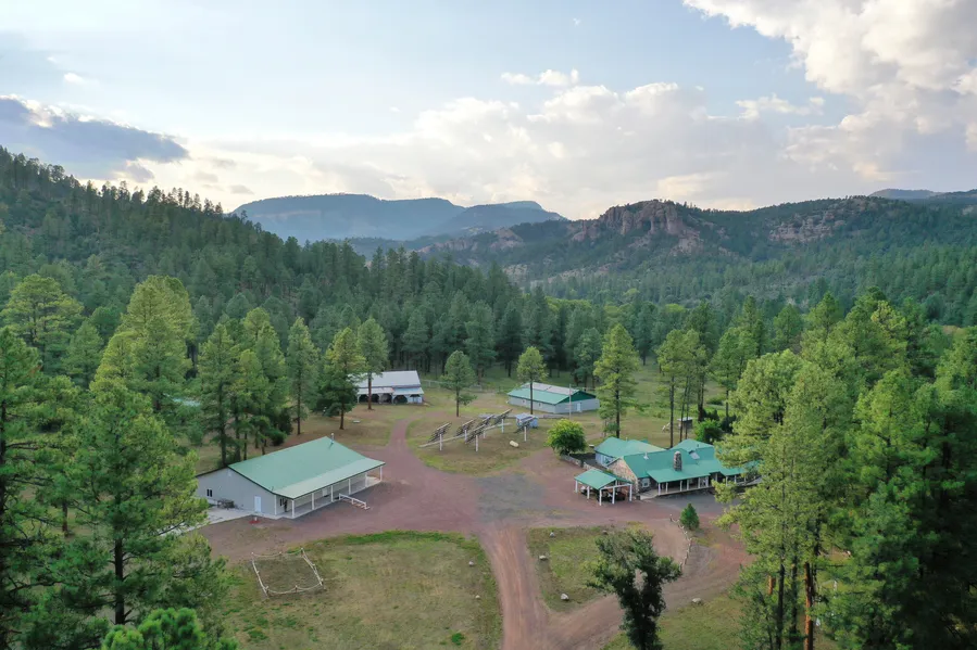 The tranquil mountain oasis of the Blue River Ranch falls somewhere in between, with an elevation of approximately 6,500 ft. You’ll find a beautiful river/riparian habitat, tall pines, juniper woodland, abundant wild sunflowers, wide-open blue skies, and incredible views of the surrounding mountain ranges. Enjoy peace of mind and serenity in the seclusion of the Ranch, which features 12,500 finished sq. ft, a private live pond, and a massive solar backup.