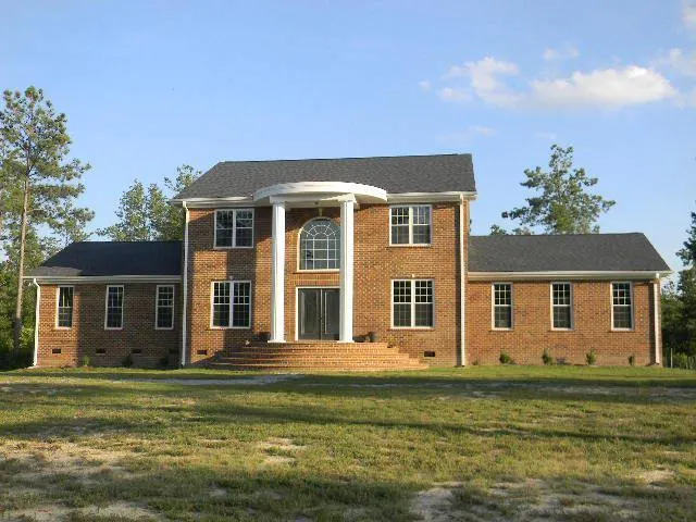 Custom home built 2009 by Gainey Construction, a Lake Gaston builder. Beautiful brick colonial sits stately on a hill on a 40+ acre parcel of land. 5BR, 3 1/2 BA. 9' ceilings downstairs gives open and spacious feel. Master suite is east wing, double garage is west wing. Many special features like crown moulding, hardwood floors, double sinks in all full baths, custom kitchen cabinets, touch faucets and tankless instant hot water heater. Jet tub & separate shower in master bath. Slightly rolling land, 2 creeks, large trees remain after residential timber cut. Winding road meanders to the home.