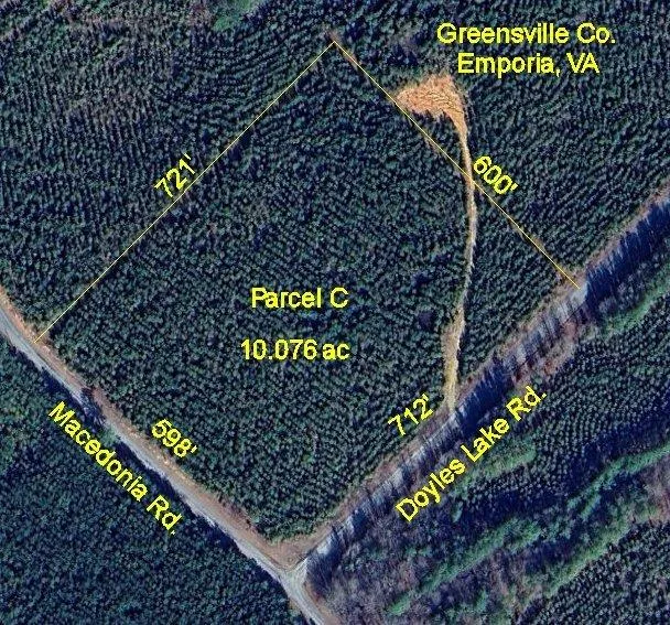 10 acres Greensville County about 15 miles from I-95 Emporia. Level land wooded in growing pines. Conventional perc. Owner financing Available with $1,995 down, $838.19mo., 15yrs/10%apr