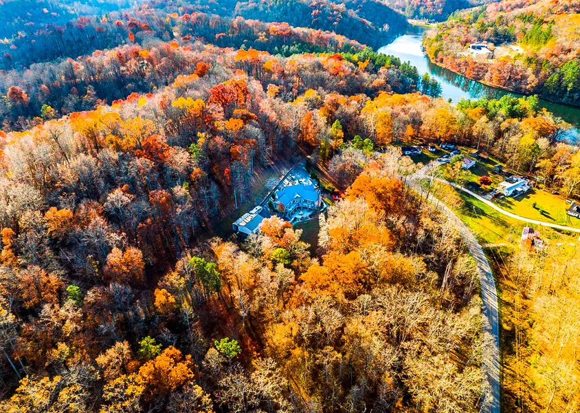 Elegant and Magnificent are two excellent words to describe this custom-built stunner with almost 8,000 sqft of living space on 11 private acres adjacent to gorgeous Greenbo State Park. This home has 4 bedrooms with the potential for 6 or more, 5 baths, 2 full kitchens, a gym, a Primary suite on the main floor, enormous vaulted ceilings, 3 gas log fireplaces, and ample open living space. You will fall in love the moment you step into the grand foyer with marble & granite floors that opens to a majestic living room with numerous elegant windows and offers a coffered ceiling private office and a stately dining room. The main floor also provides a primary suite wing and a spacious kitchen and den with fantastic amenities, top-of-the-line granite countertops, professional appliances, a vast stone fireplace, beautiful hardwood floors, and access to the impressive deck space. The enormous primary suite is a dream, with tons of closet space, a spa-style bath, a gorgeous gas log fireplace, vaulted ceilings, gorgeous windows, and additional deck access. Upstairs you will find 3 more sizeable bedrooms, 2 large full baths, and lots of closet and storage space, as well as a fantastic catwalk connecting the 2 wings of the home. The incredible walk-out basement boasts 3,262 finished sqft, tall ceilings, full kitchen, 3 possible bedrooms, offices, studio space, etc.., a great room, den, gym, grg access, and a stone gas log FP. You will also love the abundant natural light provided by the many splendid windows with access to numerous outdoor entertaining areas. This home is a private oasis with electronic gate access, a paved private drive, plenty of parking, an attached 2-car garage, a vaulted 1,200 sqft metal building with electricity, and an attached RV-size carport. If you love the outdoors, hunting, fishing, or walking trails, you can't beat this location surrounded by pristine woods, a lake, a lodge w/ a restaurant, camping, a marina, and so much more, so don't miss your chance to own this piece of paradise!