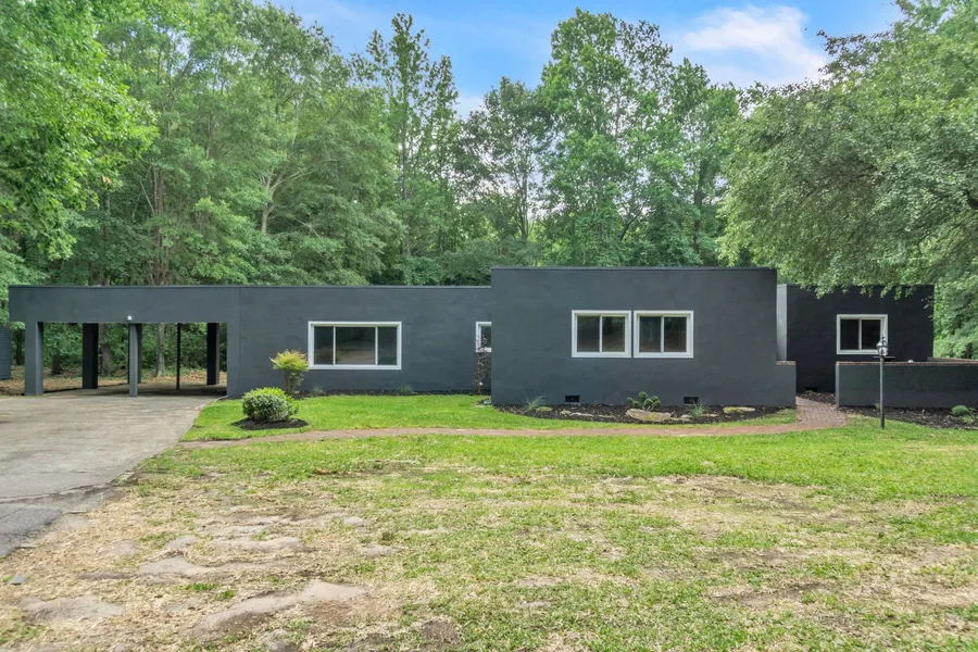 FIRST TIME ON THE MARKET: Mid-century modern 'contemporary' style home which sits on 1.41 acres perfectly nestled on a tree-shaded lot. This stunning unique property has so much to offer, with clean lines, geometric shapes and a minimalistic style including two living areas for entertainment. Upon entrance, you are greeted by a spacious floor plan seamlessly connecting the kitchen to the living room, with fireplace, which then leads to an inviting private deck. Enjoy the open kitchen with new granite countertops, customized backsplash, cabinets, and new stainless-steel appliances. Adjacent to the living room are two spacious bedrooms, each with stylishly remodeled full baths. The master bedroom is located on the opposite side of the home with a private bath and double vanity. A beautiful fourth hall bathroom leads you to a large sunken bonus room with a second fireplace. The entire house...