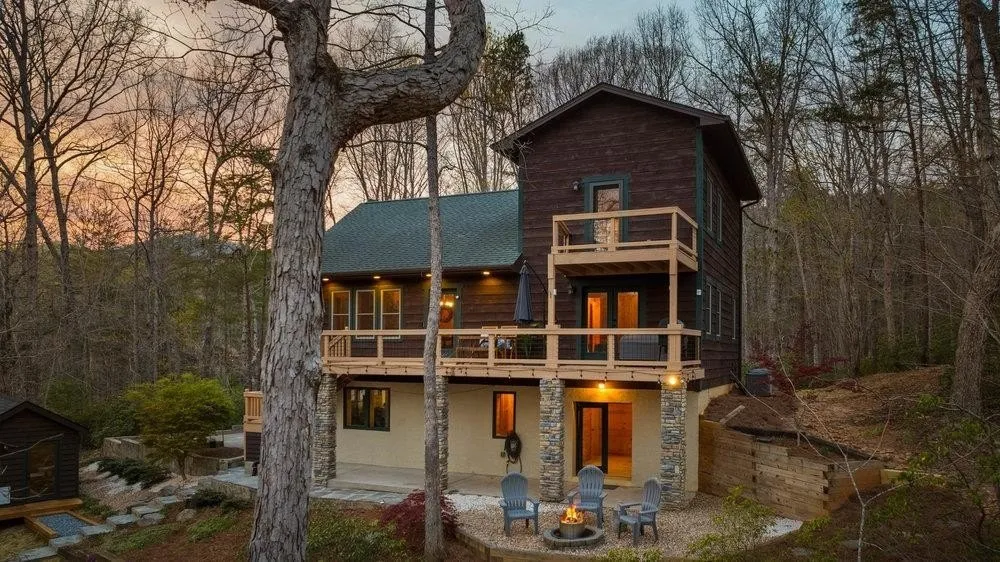 Welcome to mountain lake life at it's finest! This well-maintained, 3 bedroom, 3.5 bath home is situated on beautiful Lake Lanier in Landrum. Lake Lanier is a 140-acre private lake with no public access and 6 miles of shoreline all nestled at the foot of Hogback Mountain. As you enter the main level of the home, you'll immediately take note of the glistening pine that adorns the soaring 15' ceilings and walls. The stone, floor to ceiling gas log fireplace is super cozy for those chilly summer nights. The fully renovated kitchen is a chef's dream with ultra high-end appliances, a multitude of cabinetry, large farmhouse sink, gorgeous quartz countertops, and a large center island that provides additional storage and seating. Each of the bedrooms in this home has its own ensuite bathroom, spacious closets, and patio doors leading to a deck or patio. The main level bedroom has a tiled tub/shower combo and his & her sinks. The bedroom located at the 3rd level features 10' ceilings, a separate, jetted tub, tiled standalone shower, his & her sinks, a large walk-in closet with custom shelving, and newly renovated, private balcony overlooking the lake. The third bedroom is located at the basement level and has a tiled, standalone shower with patio doors that lead to the back patio and firepit area. The oversized two car attached garage also has a workshop- perfect for the hobbyist or simply for additional storage! Follow the stone pathway to the detached office space complete with electric, internet and it's own HVAC mini split. This 12x10 room is built with the same upscale finishes as the home and is completely adorable! Continue along the stone pathway to the covered boat dock where you'll enjoy watersports, swimming, and plenty of fishing. This is truly one of the best spots on the lake! Relax on the expansive 32' deck or covered patio and take in all of the amazing mountain and lake views around you. The home has a 50 year architectural roof and 5 year old paved driveway. All appliances including refrigerator, washer and dryer, whole home generator, and Starlink internet equipment convey with purchase! Home is smart wired for 3 different types of internet services and even has a smart car outlet added to the garage for additional convenience! The adjoining property is a beautiful historic preservation that houses structures that many years ago was a Boy Scout camp. Access to trails that lead to the top of the Blue Ridge Mountains are only 2 minutes away at the Palmetto Trail. This property is conveniently located close to Tryon and downtown Landrum where you'll enjoy shopping, dining, and entertainment year round. This property is a rare find and gives you the best of both worlds- lake life and mountain retreat living! Call today to schedule your private tour!