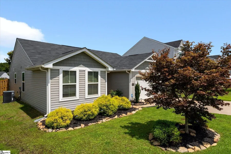 Welcome to Maplestead Farms, an ideally located community just minutes from Downtown Greenville and within walking distance to the Swamp Rabbit Trail. Residents also enjoy convenient access to Downtown Travelers Rest, Furman University, and the Cherrydale Shopping Center, making this location perfect for both work and play. This well-maintained 3-bedroom, 2-bath ranch offers immaculate curb appeal and an open, inviting floor plan. As you enter, you’ll find two bedrooms and a full bathroom tucked away at the front of the home, providing comfort and privacy for family or guests. A spacious laundry room with ample storage and walk-in space is also conveniently located off the hallway. The main living area features an open-concept design filled with natural light, creating the perfect setting for both everyday living and entertaining. The kitchen boasts abundant cabinet and counter space complemented by a stylish backsplash, offering both functionality and charm. At the rear of the home, the private master suite includes a generous walk-in closet and an en-suite bath. Outdoors, a fenced backyard with lush grass, a patio, and a garden bed provides a serene retreat, ideal for gardening or relaxing on summer evenings. An irrigation system services both the front and back yards, and solar panels convey with the property, helping to keep power bills impressively low. This home is move-in ready and offers an unbeatable combination of location, comfort, and value—don’t miss your opportunity to make it yours. Call (864) 686-6424 to schedule a private showing!