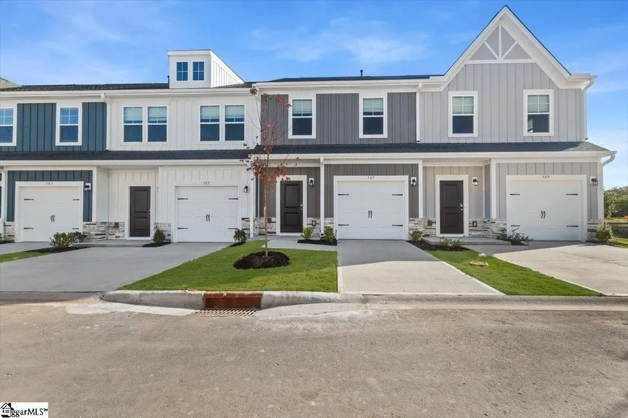 Discover Amaris, Mauldin’s newest townhome community where modern living meets unbeatable convenience and charm. Nestled just off Laurens Road and minutes from the vibrant Bridgeway Station, Amaris offers a lifestyle that blends comfort, style, and affordability in perfect harmony. Step into the beautifully crafted Amara floor plan, a spacious 3-bedroom, 2.5-bathroom home with 1,470 square feet of thoughtfully designed space. From the moment you enter, you’ll be greeted by an open-concept main level featuring sleek laminate flooring, elegant oak stairs, and contemporary open railings that elevate the entire aesthetic. The kitchen is a true showstopper, boasting quartz countertops, a stylish tile backsplash, pendant lighting, and premium stainless steel GE appliances—including a gas range, built-in microwave, and side-by-side refrigerator—all surrounded by ample cabinet storage. Upstairs, the primary suite is your personal retreat, complete with a generous walk-in closet and a spa-inspired ensuite featuring a double vanity, tile flooring, and a luxurious 4-foot tile shower. Two additional bedrooms, a shared full bath, and a convenient laundry room round out the second floor, offering space and functionality for every lifestyle. Every home at Amaris is built with energy efficiency in mind, including a tankless gas water heater and high-performance furnace. Exterior upgrades like hardiboard plank siding, a stone water table, and sophisticated two-tone finishes add to the stunning curb appeal. The community’s inviting courtyard, centered around a cozy fire pit, sets the stage for memorable gatherings and relaxed evenings. As a Stanley Martin homeowner, you’ll enjoy the peace of mind that comes with a Builder Warranty and included lawn maintenance—giving you more time to focus on what matters most. Come tour our model home and experience firsthand why Amaris is the place you’ll want to call home. We’re excited to welcome you.