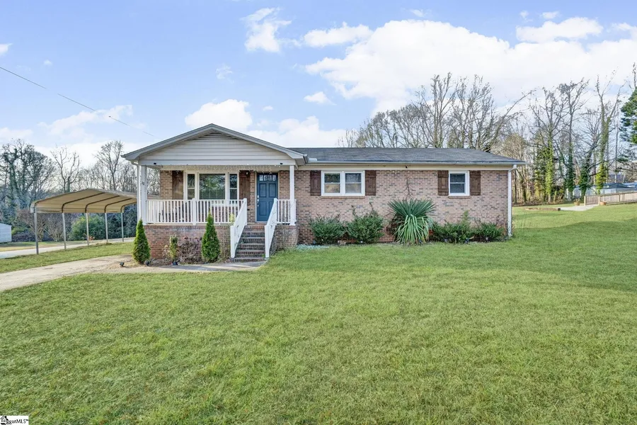 Welcome home to this cozy 3-bedroom, 1.5-bath ranch home set on just over half an acre on a corner lot with no HOA. This property offers comfortable one-level living with plenty of outdoor space to enjoy. A wide front porch creates a welcoming entry and a great spot for relaxing. Inside, the home features an open layout connecting the living room and the eat-in kitchen, making the space feel inviting and functional. The kitchen includes stainless-steel appliances, recessed lighting, and direct access to the covered back deck. A side entrance provides quick access to the detached carport. Down the hallway is a full bath along with two secondary bedrooms that offer flexible use with the primary bedroom located at the end of the hall. The home features real hardwood floors adding charm and character to the space. Neutral paint tones and practical storage throughout make the home easy to personalize. The covered back deck expands your living space outdoors and is perfect for grilling or gathering with friends. The large yard offers plenty of room for gardening, play, or future projects, and two outbuildings provide additional storage or hobby space. Just minutes from Travelers Rest and the Swamp Rabbit Trail this home offers the location you want with the space to make it your own. With a little TLC, this property can truly shine—making it an excellent option for both homeowners and investors alike. Don't miss out on this opportunity and schedule your private showing today! Down the hallway is a full bath along with two secondary bedrooms that offer flexible use with the primary bedroom is located at the end of the hall. The home features real hardwood floors adding charm and character to the space. Neutral paint tones and practical storage throughout make the home easy to personalize. The covered back deck expands your living space outdoors and is perfect for grilling or gathering with friends. The large yard offers plenty of room for gardening, play, or future projects, and two outbuildings provide additional storage or hobby space. Just minutes from Travelers Rest and the Swamp Rabbit Trail—and an easy drive to downtown Greenville—this home offers the location you want with the space to make it your own. Don't miss out on this opportunity and schedule your private showing today! Home is being sold AS-IS.