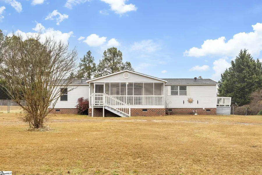 219 Campbell Lake Road offers a flexible opportunity on just over half an acre with NO HOA, conveniently located in the heart of Greer. The 3-bedroom, 2-bath home features a huge screened front porch, providing a great space for relaxing and spending time with friends and family. The open-concept floor plan includes a living room with a fireplace and a spacious dining area. The kitchen provides ample prep space and connects easily to the main living areas. A walk-in laundry room off the kitchen includes a separate exterior door for added convenience. The split bedroom floor plan allows privacy for the primary suite, which features an attached bath with dual vanities and a walk-in shower. Two secondary bedrooms share a hall bath. The large, fully fenced backyard includes multiple outbuildings suitable for workshops, storage, or even a she-shed while still offering plenty of space for gard...