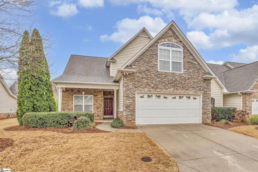 Lots of light in this end unit townhome in the picturesque gated community of Plantation Greene. Hard to find primary bedroom on main level. Owner just installed brand new luxury vinyl plank flooring and carpet throughout so you don't have to. Large open floor plan. Spacious kitchen with breakfast nook to the front. Entertainment will be a breeze, as large dining area is open to the living room with gas fireplace. Kitchen has Cafe duel fuel slide in range with gas burners and griddle for all of your cooking needs. Screened porch out back for quite nights, and no pesky bugs. First floor primary has separate shower, tub and oh what a walk-in closet. Upstairs you will find a spacious loft, full bath, and three additional bedrooms. One bedroom could be used for a rec room, office, or gym area. So many possibilities. Large attached 2 car garage. Cafe Washer and dryer included. Walk this beautiful neighborhood full of lovely homes and park areas. Go to the pool, take a whirl around the lazy river, walk to the playground or have a party in the clubhouse. All while your lawn and exterior maintenance is done for you. This neighborhood has it all, so does this townhome. Close to any shopping you can think of and very short drive to Greenville's beautiful downtown. Dining at Bridgeway Station is 5 minutes away. Easy access to I-85 and I-385 . Location. Location.