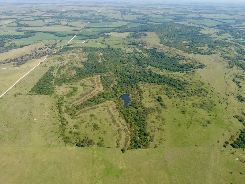 PROPERTY DESCRIPTION: Tract 2: 480+- acres of timber and pasture located in the Heart of the Big Rolling Hills of Greenwood County, Kansas. This area is known for high quality Kansas Whitetail Deer. Native pasture and 5 ponds offer forage and water for livestock. Fences appear to be adequate for cows. A good variety of timber includes Oak and Walnut trees. Access is excellent, just 2 miles from Blacktop HWY 400. This is a great opportunity to purchase a large tract of very rolling and scenic Greenwood County, Kansas land. Full possession will be given at closing.