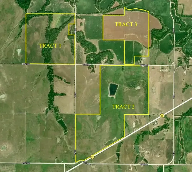 Tract 3 of 3: PROPERTY DESCRIPTION: 114+- acres of tillable farm ground along Bachelor Creek east of Eureka in Greenwood County, Kansas. In addition to the high quality farm ground, the north boundary goes to the centerline of Bachelor Creek for 1/4 mile. This feature offers some hunting and fishing recreation value in addition to the agriculture use. Great opportunity to Invest In Land!