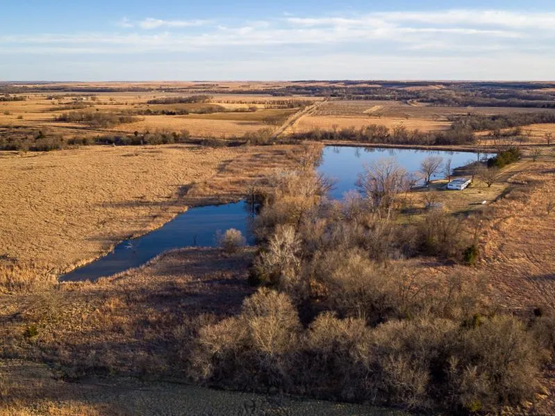 This remote 80 +/- acres in Greenwood County is the perfect combination of grass, timber, and water to chase about all the wildlife Kansas has to offer. In addition to a stocked, 5-acre pond and 75 acres of native grasses and timber, there is a nice 3 bedroom, 2 bath modular home on the property set to watch the sunrise across the pond. Known for holding intense numbers of waterfowl on the pond in the winter and located in an area known for giant whitetail deer, this is property has it all.
