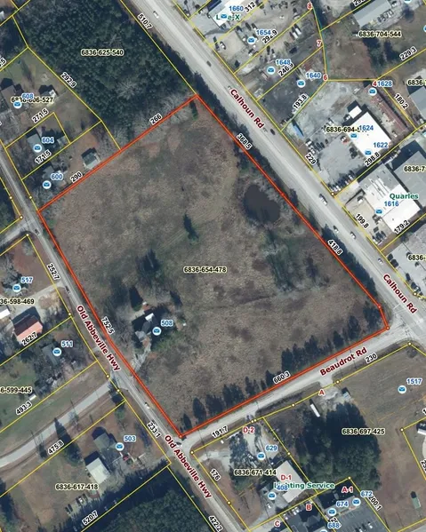 This tract of 11.46 acres zoned C2 on four lane Calhoun Rd., one block off the Bypass, is Greenwood's next big commercial opportunity. This site has it all in terms of size, location, terrain, utility availability, zoning, road frontage and visibility. All utilities are at the site with no capacity issues. Frontage on Calhoun Road is 787 feet, Beaudrot Rd. 660 feet and Old Abbeville Highway 752 feet. There can be consideration for subdividing. The house fronting Old Abbeville Highway could be sold separately.