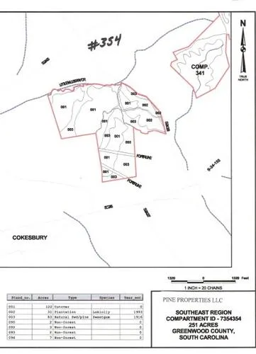 251 Acres with 83 acres of Natural Hardwood, 31 acres planted pines in 1993 and the remainder in 2005 planted pines. Little Miller Creek on property with 2 power lines for great hunting area. Located near Hodges and about 30 minutes from Greenville S.C.