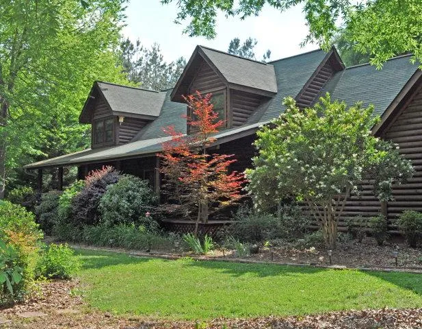 This spacious 2994sf log home has all the natural rustic character you desire- open plan w/ the right mix of high vaulted trusses & beamed ceilings, solid wood columns, hardwood floors thru-out, staggered log interfaces and just enough drywall so you are warmed but not overwhelmed by the natural ambiance of wood. Wonderful front porch runs the length of the home, comes with a swing bench & is ready for your rocking chairs. Relax and enjoy the natural beauty & landscaping-- it's totally private from the street. Welcoming wide Foyer has room for your accent pieces and opens to the Great Room and a big open Kitchen for an easy-flow layout. The Kitchen works nicely to blend gathering and meal prep w/ a giant center island that has easy seating for 4-5 at the Breakfast Bar. Lots of counter space + composite double-sinks, stainless appliances including a side-by-side front-serve ice-maker frid...