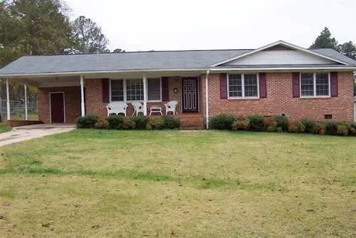 Great neighborhood community & nice 3/2 home w/ good features. Rocking chair porch. Carport w/ plenty of side parking for 2nd vehicle. Big eat-in kitchen w/attractive vinyl tile-look flooring, ice-maker fridge, DW, micrw., eye-level oven & separate cooktop range, double sink & pull-out racks for pans. Large dining area w/ double doors has interior blinds & opens to patio. Love your LR w/ gas woodstove! Utility rm w/ W/D, ceiling drying rack & built-in ironing brd. Great storage thru-out home. Roof & AC only 6 yrs old. 2nd bedrm is 13x12, 3rd is 13x10. Approx utilities per seller- $50 gas & electric, plus $40 water/sewer. Berber carpet in hall, bedrooms & LR. Ceiling fans in all bedrms, 2 in LR. Like a good yard? This one is fully fenced for pets/children. There are two "red-barn-style" outbuildings 15.5x12.5 (+ a 7x7 shed extension), and 14x9.5, both with power. Plus there's a 9.5x6.5 brick storage closet right off carport. Nicely landscaped along the front porch & two young Bradford pear trees in the back will provide beautiful colors for years to come.