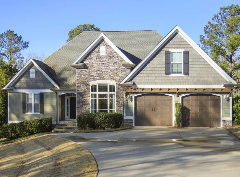 Custom home in the desirable gated Stoney Point lakeside country club! Appealing hardi-plank and stone exterior on an Open-plan home just the right size at 2543Sf. Enjoy spacious rooms, warm pine hardwood flooring, several tray ceilings and crown moulding through-out. Formal DR is elegant with high trey ceiling. Eat-in Kitchen has granite counters with a big Breakfast Bar for gathering, GE Profile appliances including double ovens (incl. convection), 5-burner gas cook-top (with a real overhead vent) and a French-style front-server fridge, tiled back-splash, a bright sink with pull-out wand, convenient built-in desk, upper & lower lazy susans, and soft-close drawers. Vaulted ceiling in the LR already has the inset surround speakers and lighting, and built-in cabinets provide space for your photos & displayables on each side of the stone-surrounded Gas Fireplace. Love the deep windows on ...
