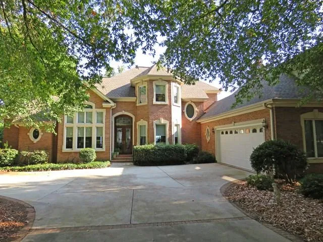Beautiful Big Water Home at the tip of the Compass Point peninsula on the perfect level lot - a gracious not-too-big home w/ a huge view! This lovely 3064sf residence presents itself distinctively upon arrival w/ two gas lantern driveway sentries, a long brick-accented driveway providing welcome street privacy, oval beveled glass window accents, & a striking beveled glass entry into the home. Inspired by its address, an attractive compass design of inlaid wood graces the Foyer, but your eyes will quickly be drawn straight through the Great Room's wall of glass to sparkling Lake Greenwood. Then you'll notice all the attention to quality detail- pleasing open plan, high soft-edge trey ceilings, rounded corners, 8ft doors, exquisite built-in shelving & cabinetry in numerous rooms, elegant arches & deep crown moulding throughout, light oak floors accented by cherry wood room definitions, cut...