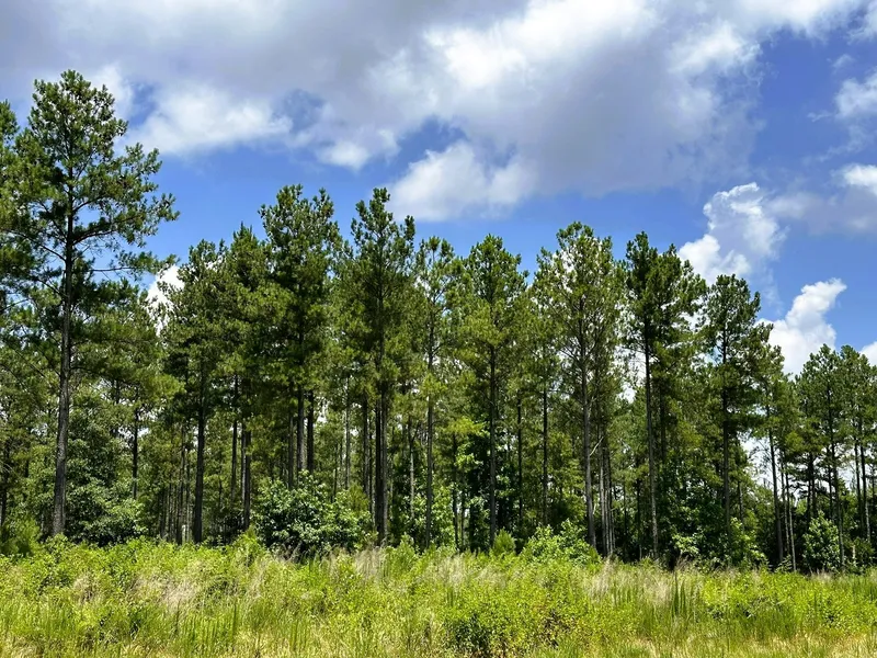 About 154 acres are forested with loblolly pine planted in 1999. These trees have been fertilized and thinned twice. Blackberry, grasses and other wildlife food sources are common. About 16 acres of pines were planted in 2006. These young trees are healthy and growing fast. About 56 acres of loblolly were planted in 1980 or earlier in the easternmost part of the property, in an area that will require some investment in road work to harvest.