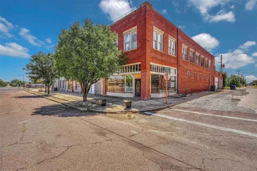 Located in downtown Mangum, across from the Court house these two storefront properties offer many ideas for you to start/grow your business. Property 112 is a corner building, with large storefront windows, corner facing door and is currently being used as an art studio. The first floor has a half bath, parking and storage garage and beautiful original tin ceilings. The second floor is where you'll find a 3 bedroom, 1 bath apartment with rustic feel and great views! Full kitchen, laundry room, tankless water heater, private patio deck, large living room, original tin ceilings ; this apartment is move in ready. Next door at 114 you'll find plenty of space for storage. HVAC is approx. 1 year old comes with warranty, sewer lines have been replaced, gas lines have been replaced, new fuse box, and the apartment was newly wired when seller built apartment, roof is approximately 6 yrs old. Seller is going to replace door on upstairs apartment and repair doors on the storage building on 114.