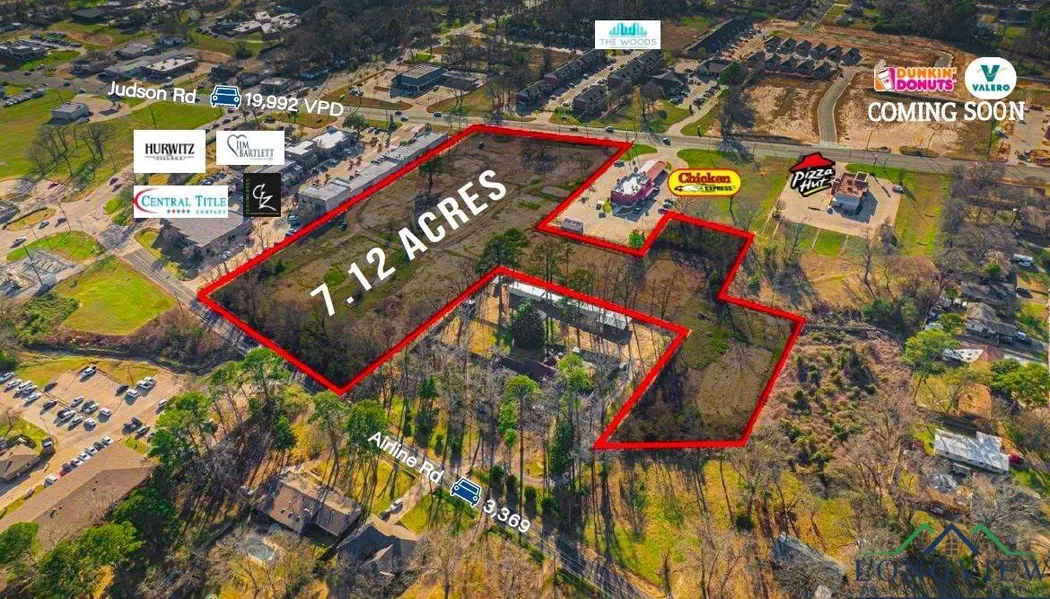 Nestled in the heart of Longview lies the remarkable property of 2100 Judson Rd, a sprawling 7+/- acre parcel of land that promises to be a game-changer for the city's commercial landscape. This sought-after location offers unparalleled potential for development, making it a dream come true for visionary investors and entrepreneurs alike. Strategically positioned with 330 feet of frontage on Judson Rd, and depth varying from 650 to 750 feet, 2100 Judson Rd guarantees high visibility and effortless ingress and egress for businesses and customers alike. The property's versatile layout has Airline Rd situated on the east side with 322 front feet, further enhancing its visibility and accessibility and opening up a world of possibilities for creative development. This sought-after location adjacent to the hard corner of Judson Rd at Hollybrook Dr offers unparalleled potential for development. The size of the property also allows for a myriad of opportunities, ranging from retail outlets to modern apartment complexes, from trendy restaurants to mixed-use developments that seamlessly blend commercial and residential spaces. Additional possible development uses include climate controlled or personal storage facilities, shopping center, mixed-use office/general retail, medical and professional offices complex, multi-family apartments/condos, and more. Whether you're looking to establish a thriving retail hub, create vibrant apartments or residential development catering to urban living, or set up a diverse mix of businesses, 2100 Judson Rd has the potential to bring your vision to life. With its prime location, size, and accessibility, this property stands to be an enticing investment or development opportunity in one of Longview's most desirable areas.