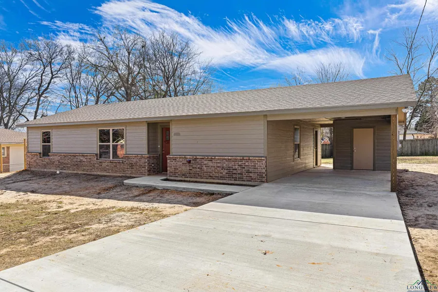 Welcome to a New Construction home in the heart of Longview, Texas! This charming residence perfectly blends modern design and classic comfort. Featuring 3 spacious bedrooms, 2 full bathrooms, and an open-concept floor plan, this home is ideal for you to enjoy a stylish living in a vibrant community. The kitchen is anchored with a 8 foot kitchen island, upgraded stainless steel appliance package, walk in pantry and beautiful custom cabinetry. The adjoining dining area flows seamlessly into the bright and inviting living room, complete with large windows that fill the space with natural light. The home is all LED lighting. The primary suite offers a private retreat, featuring a generous walk-in closet and a luxurious en-suite bathroom with dual vanities and a walk-in shower. Two additional bedrooms provide flexibility for a growing family, a home office, or guest accommodations with all of the bedrooms having large closets for storage. Outside is a generous size backyard, where you'll find a covered patio. The fenced yard offers plenty of room for gardening, play, or pets. Carpot area has a storage room. Situated in a desirable neighborhood close to schools, shopping, dining and both hospitals, this home provides convenient access to everything Longview has to offer. With energy-efficient features and quality finishes throughout, this property is ready for you to move in and start making memories.