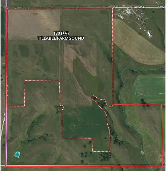 320 (+/-) acres in Carlock Township, Gregory County, South Dakota of crop/grazing land (180 acres tillable). Present use is small grain, sorghum, hay ground, and pasture with a dugout. Excellent pheasant hunting. The soil productivity average is 52.3 on crop/hay ground. There is a Tripp County Rural Water on the property.