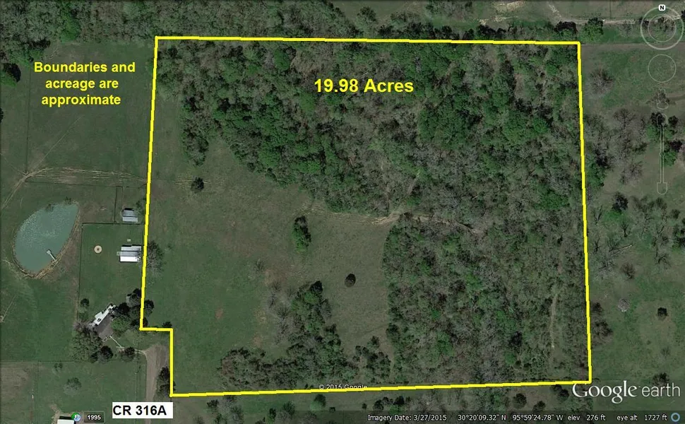 Research Parcel InformationFrom FM 362 in Grimes County, go west on CR 316, make bend and turn east on 316A to road's end. Property on right and to front with sign.