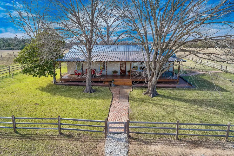 Once an organic farm, this charming 30-acre homestead embraces a cozy, renovated farmhouse and guesthouse. Ship-lap and unique bedrooms with lofts are just a few of the details that make these homes special. Walking up the vintage bricked sidewalk, guests are welcomed by a large wrap around porch with a beveled-glass door entrance leading into a living space ordained by custom bookshelves. The eat-in style kitchen has an inviting space with a large farm sink and custom Shaker-style cabinets with pecan countertops. Picturesque window views throughout the house allowing natural light to fill the home. From the front porch, enjoy looking out across to the large, fully stocked pond ordained by a pier and nearby tree house. One can enjoy evening sunsets from the back porch which is situated right off the master bedroom. The 1,830 sq ft barn is equipped with an indoor and outdoor chicken coop. Must see to fully appreciate.
