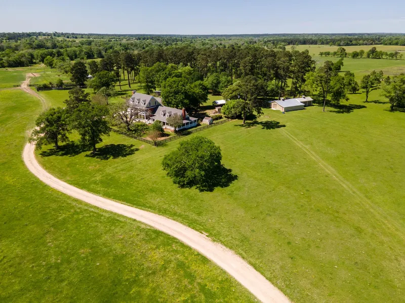 A one-of-a-kind opportunity for a 292 acre ranch in Grimes County, Texas. The ranch is conveniently located at the epicenter of Huntsville, Aggieland, Montgomery, and Conroe. Sam Houston Forest is only minutes away. This stunning ranch has been fenced for rotational grazing strategies. On the west side of the property, you'll find over 1.25 miles of Lake Creek, offering a serene natural escape within the property. The centerpiece of this ranch is a breathtaking Southern plantation-style home that has 4 beds and 5.5 baths. The wraparound porch provides a perfect vantage point to soak in the tranquility of the landscape. The home is beautifully situated among great pine trees. The ranch also features four ponds, cattle working facilities, two barns, and a water well that supplies the house and livestock troughs. Whether you're looking for a serene retreat, a fully operational ranch, or both, this Grimes County ranch offers an incredible opportunity for the discerning buyer.